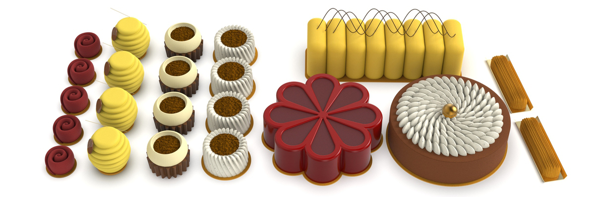 Roger van Damme asked us to design his new high tea serving set, with scalability and aesthetics in mind. We developed the three central petit four molds: the Mini Charlotte, Mini Honoré, and Mini Bubble Sphere. This high tea can now be enjoyed at Botanic Sanctuary Antwerp and Four Seasons Istanbul.